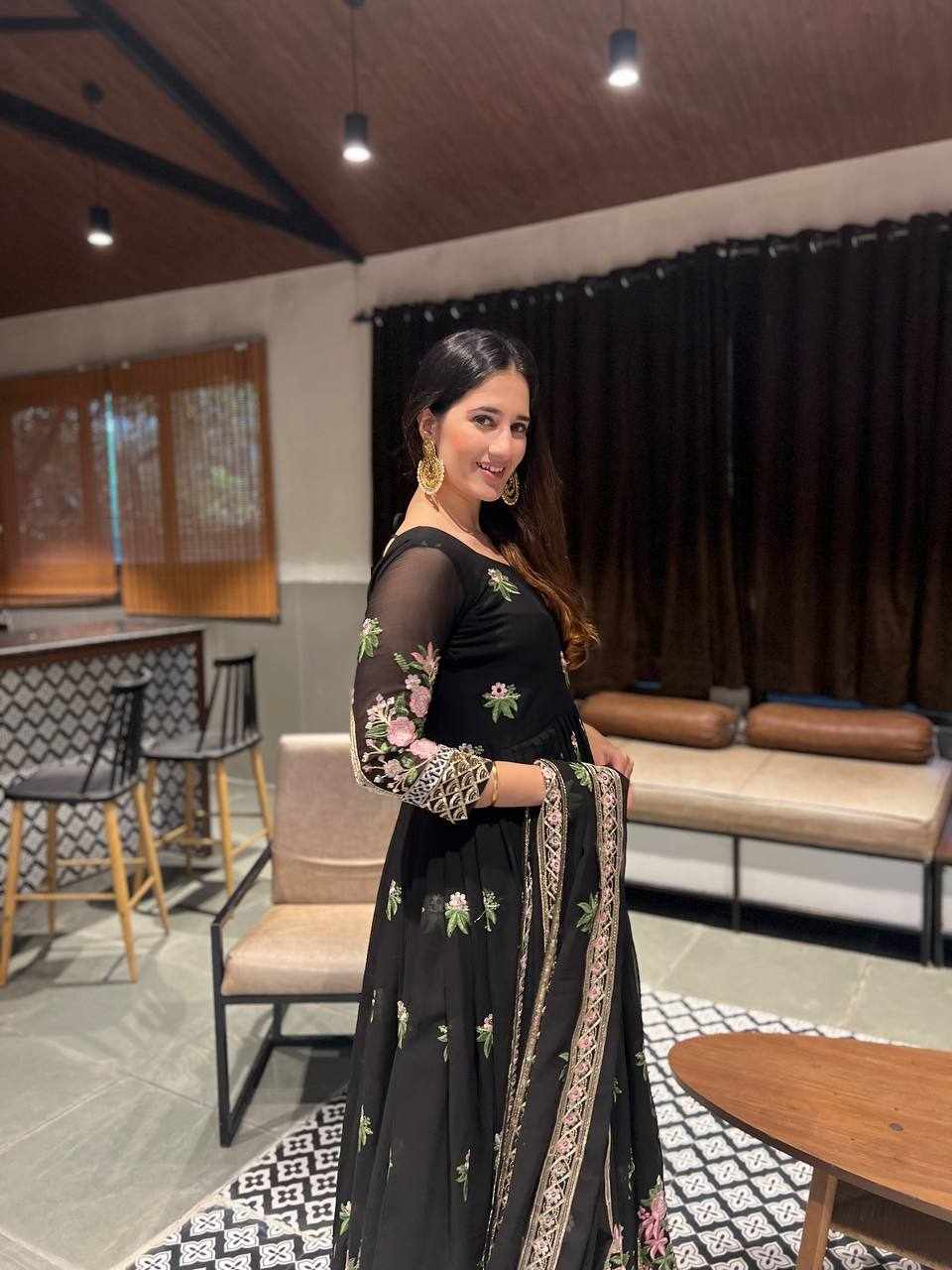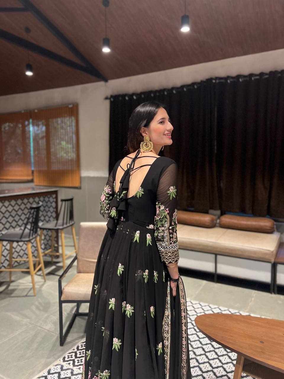 GOWN FABRIC: FOX GEORGETTE WITH EMBROIDERY WORK WITH FULL SLEEVES