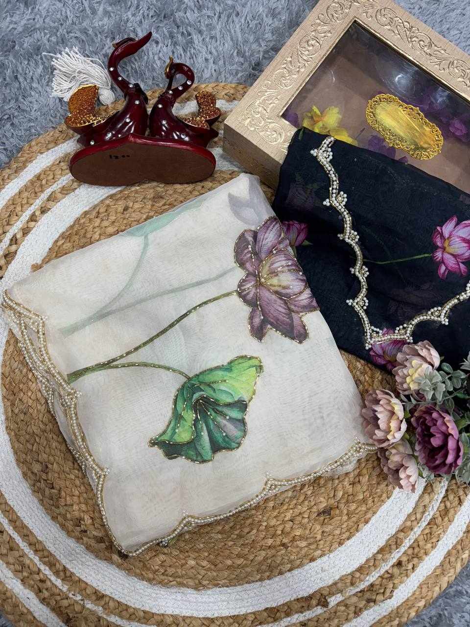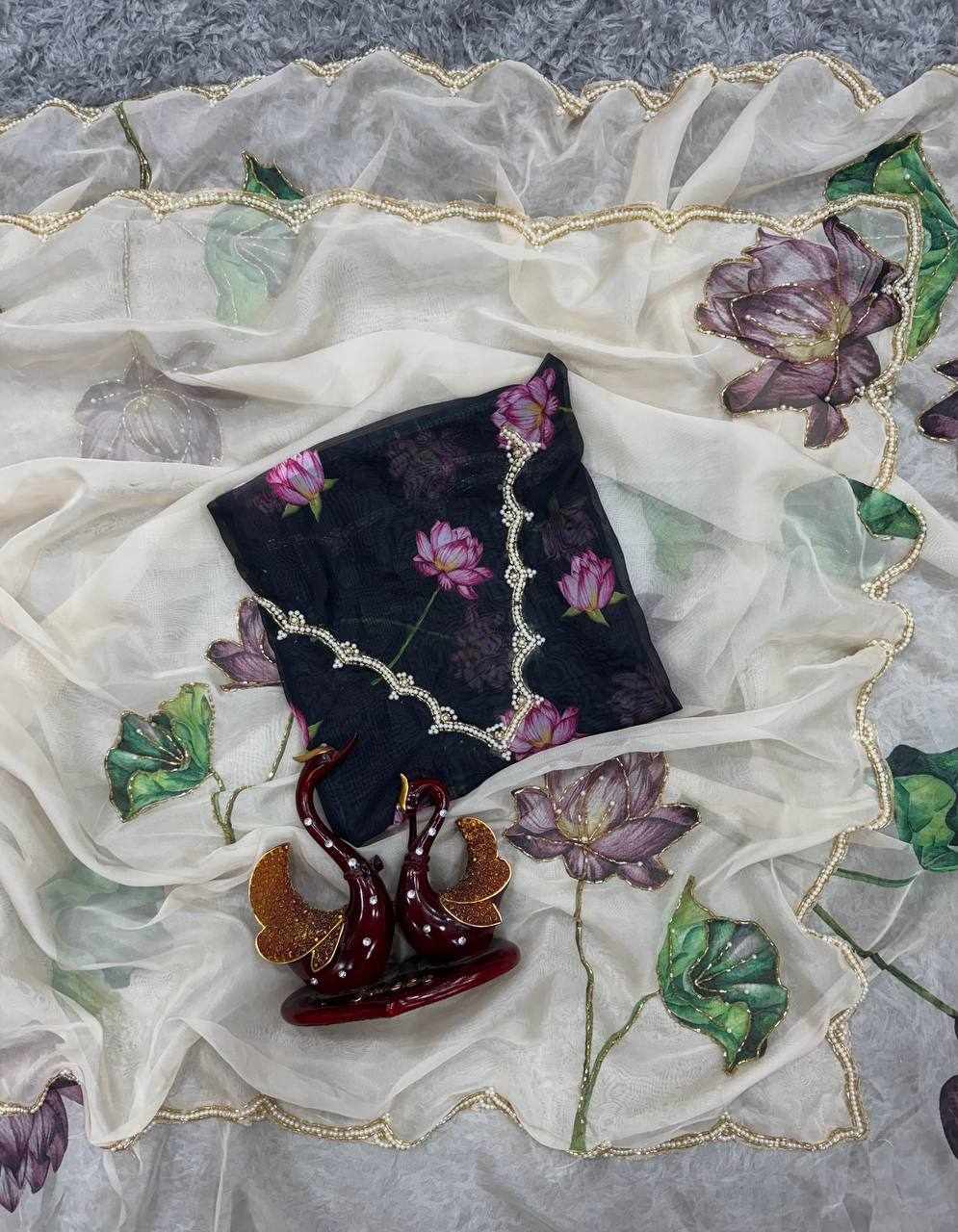 | Name : | NC 5386 Soft Organza White Beautiful floral print Saree |