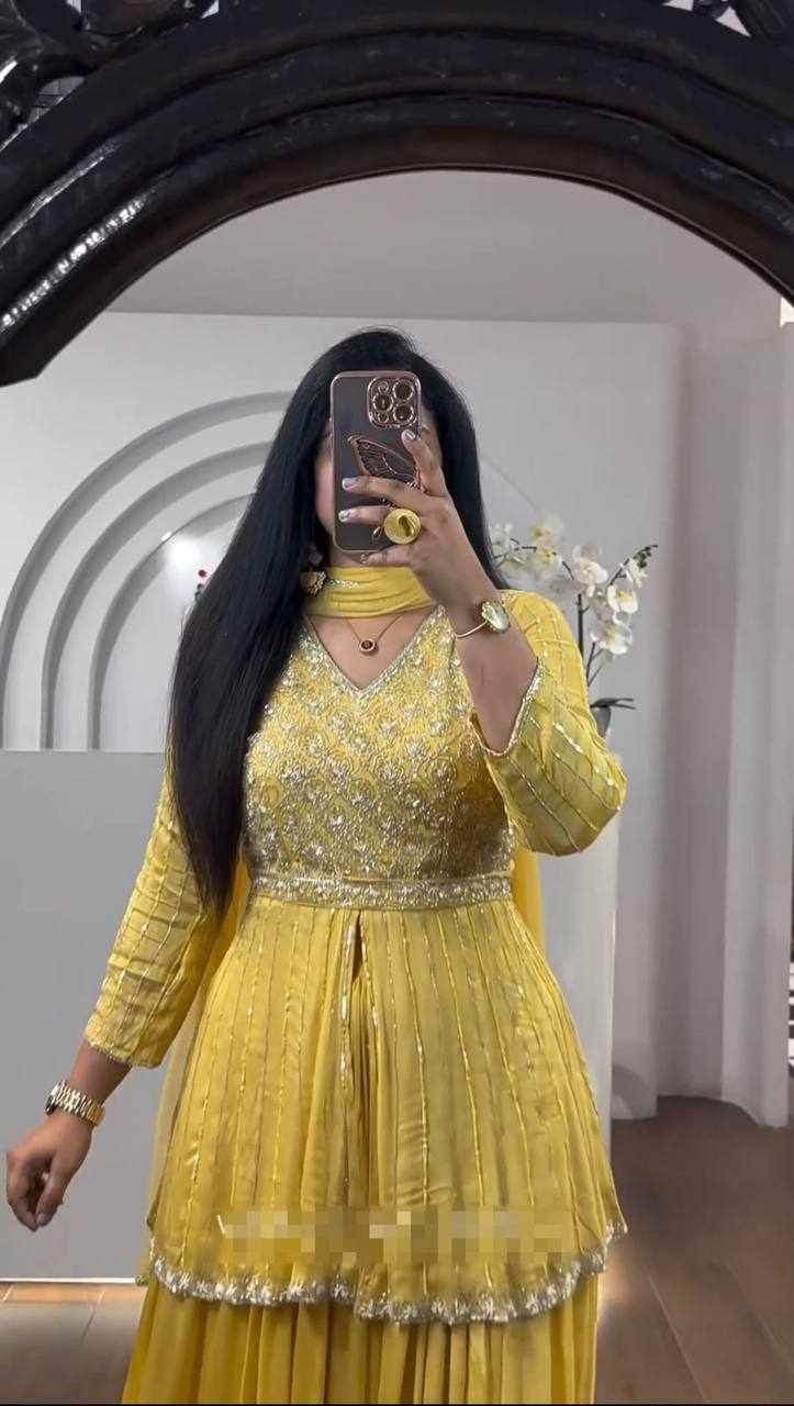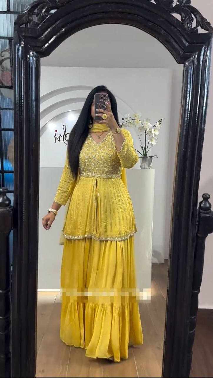 Home / Pc 434 Yellow Chinon Sequence Work Lehenga