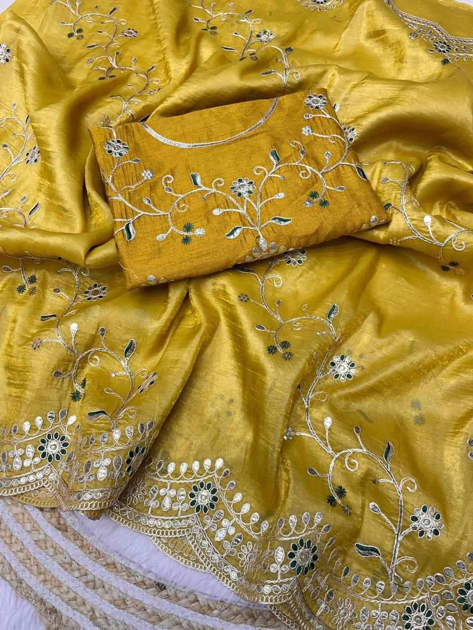 Name : RC Gota Foil Mustard Beautiful Designer Saree