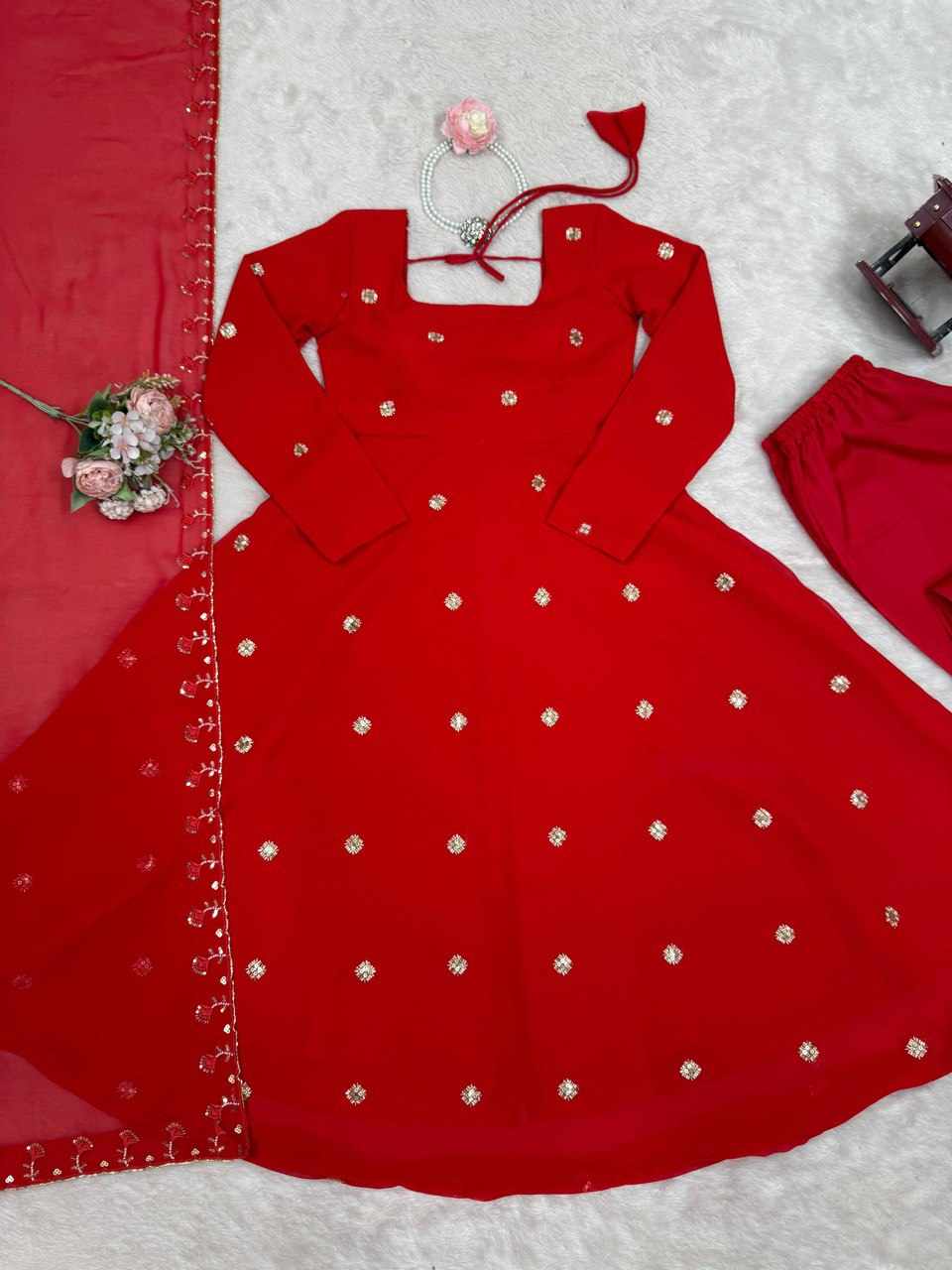 | Name : | RTC 5872 Foux Gorgette Beads with moti handwork Readymade Dress |