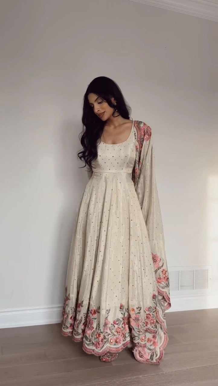 | Name : | RTC 5873 Chinon silk thread with Sequnce Off White Readymade Dress |