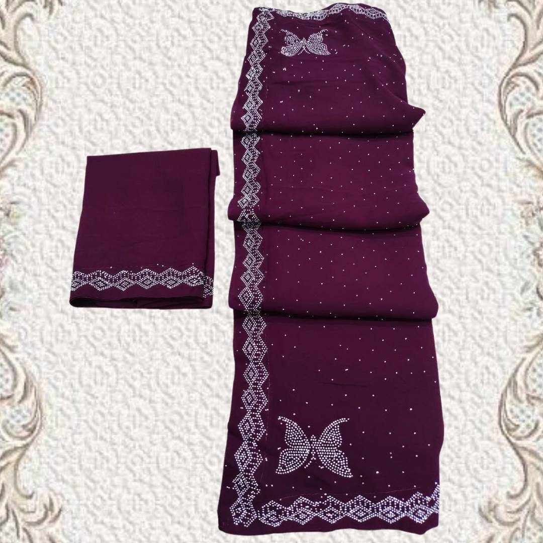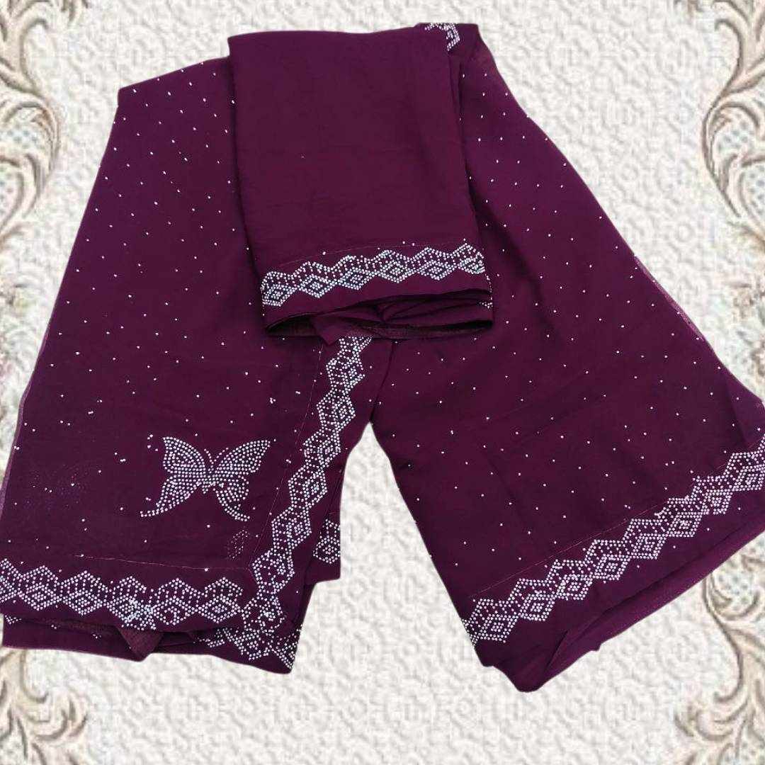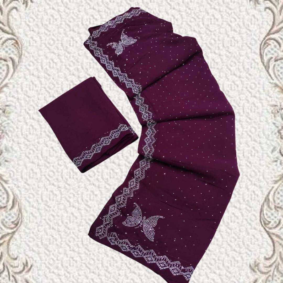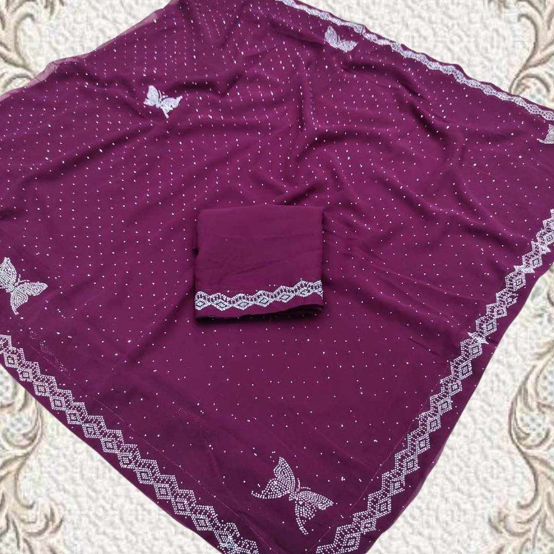 S4s Wine Siroski Butterfly Stones Lace Georgette Party Wear Saree