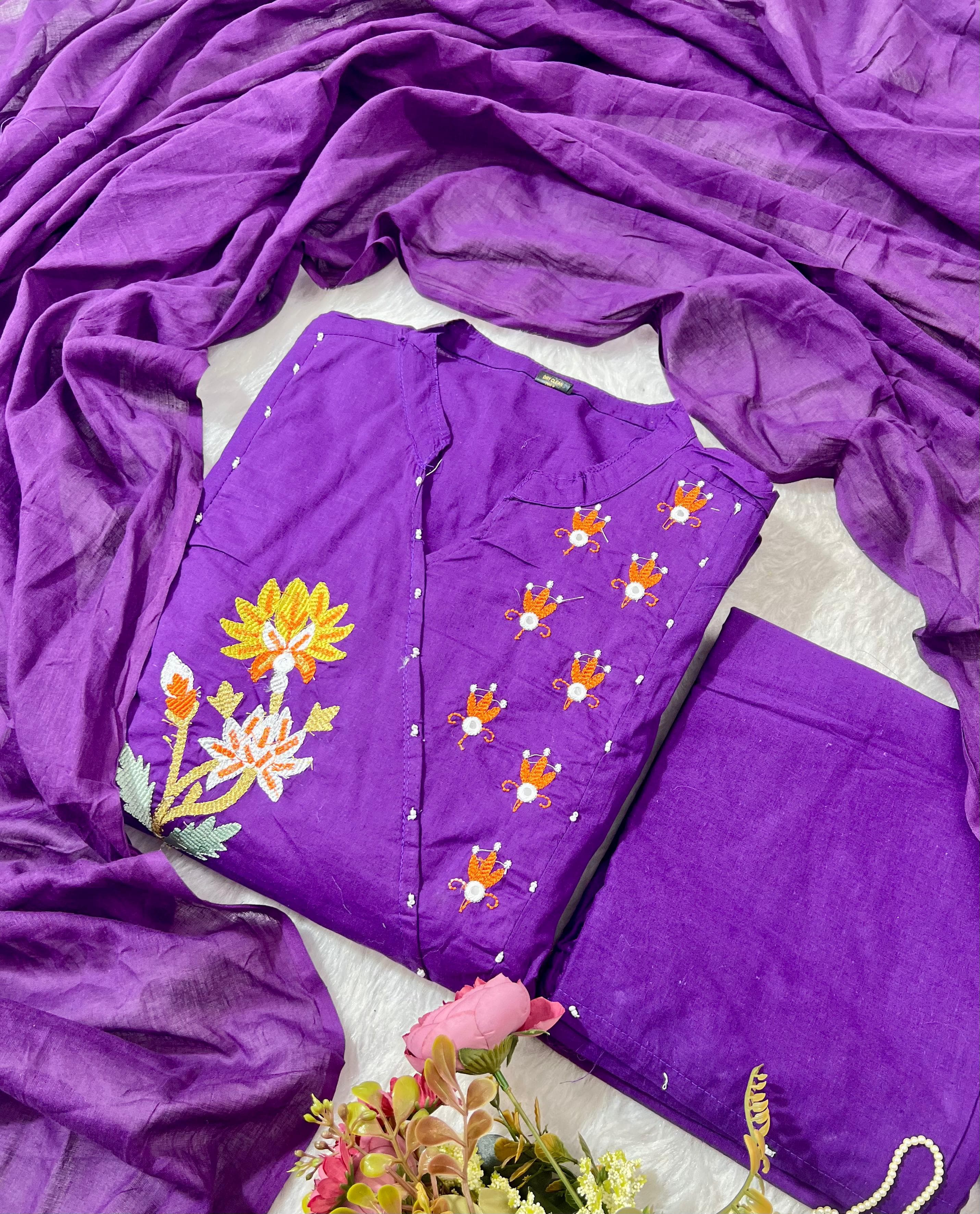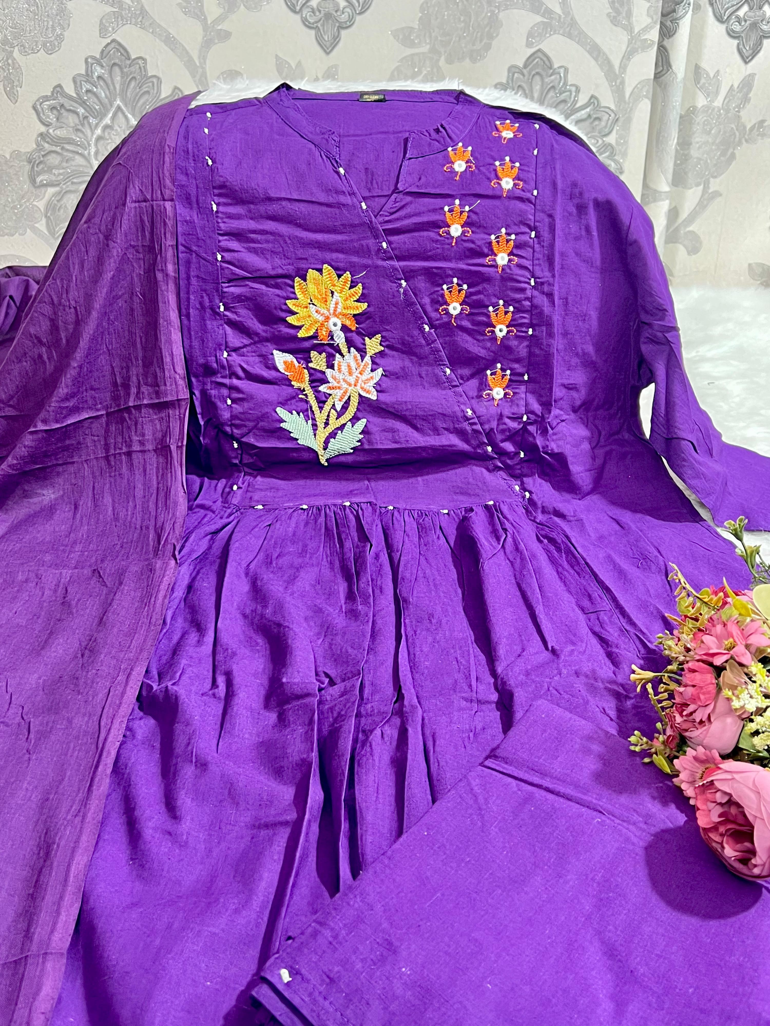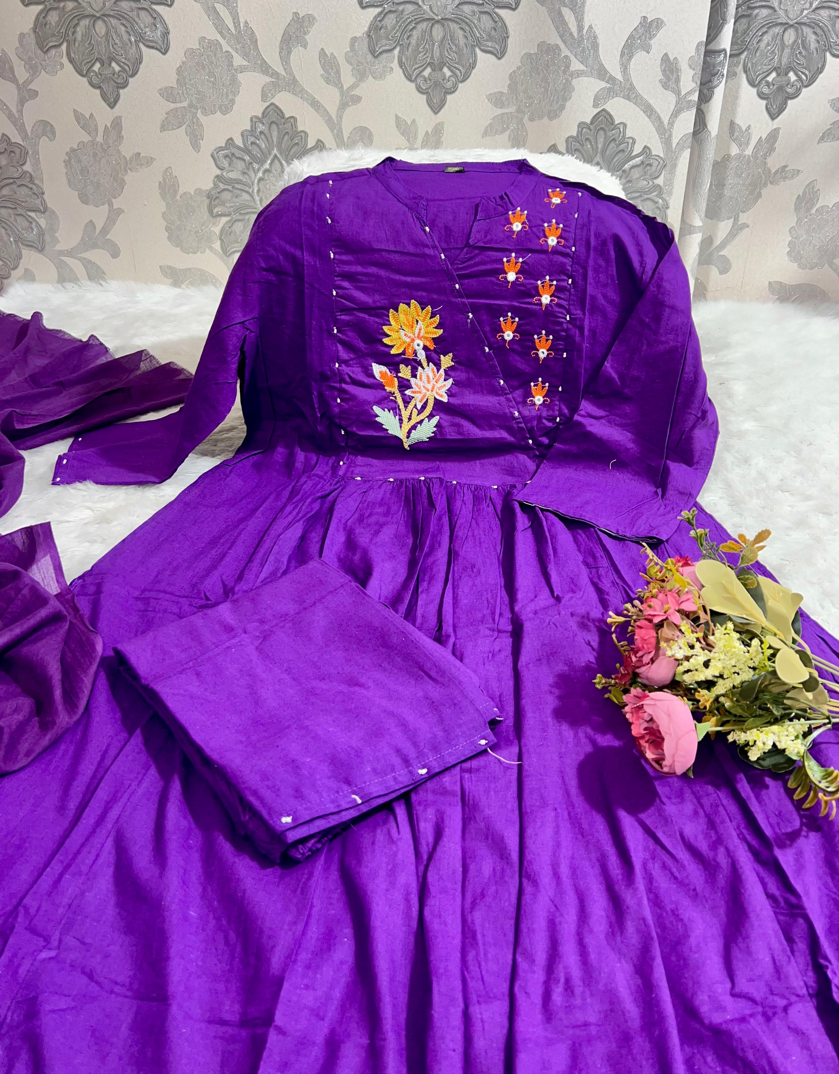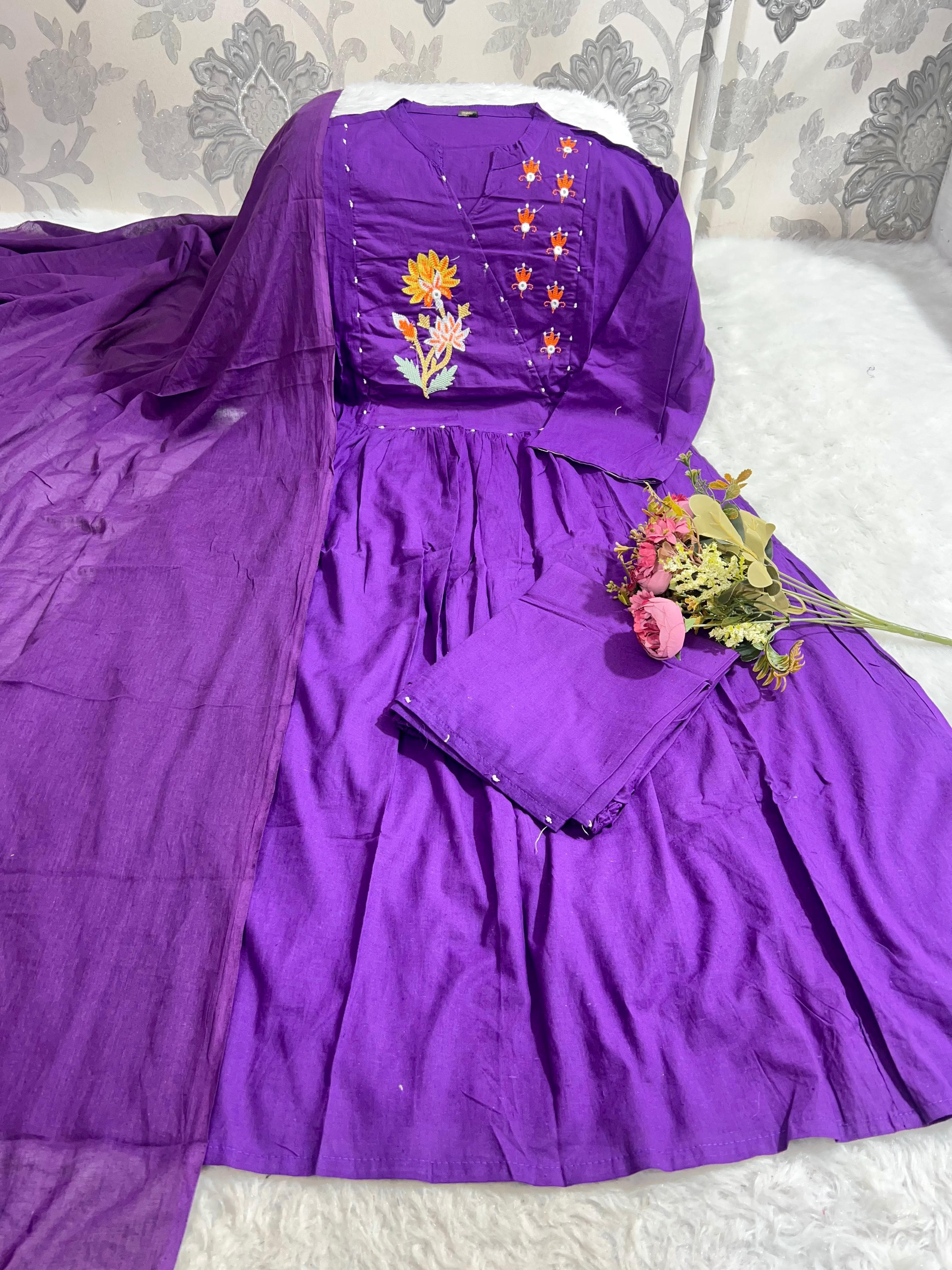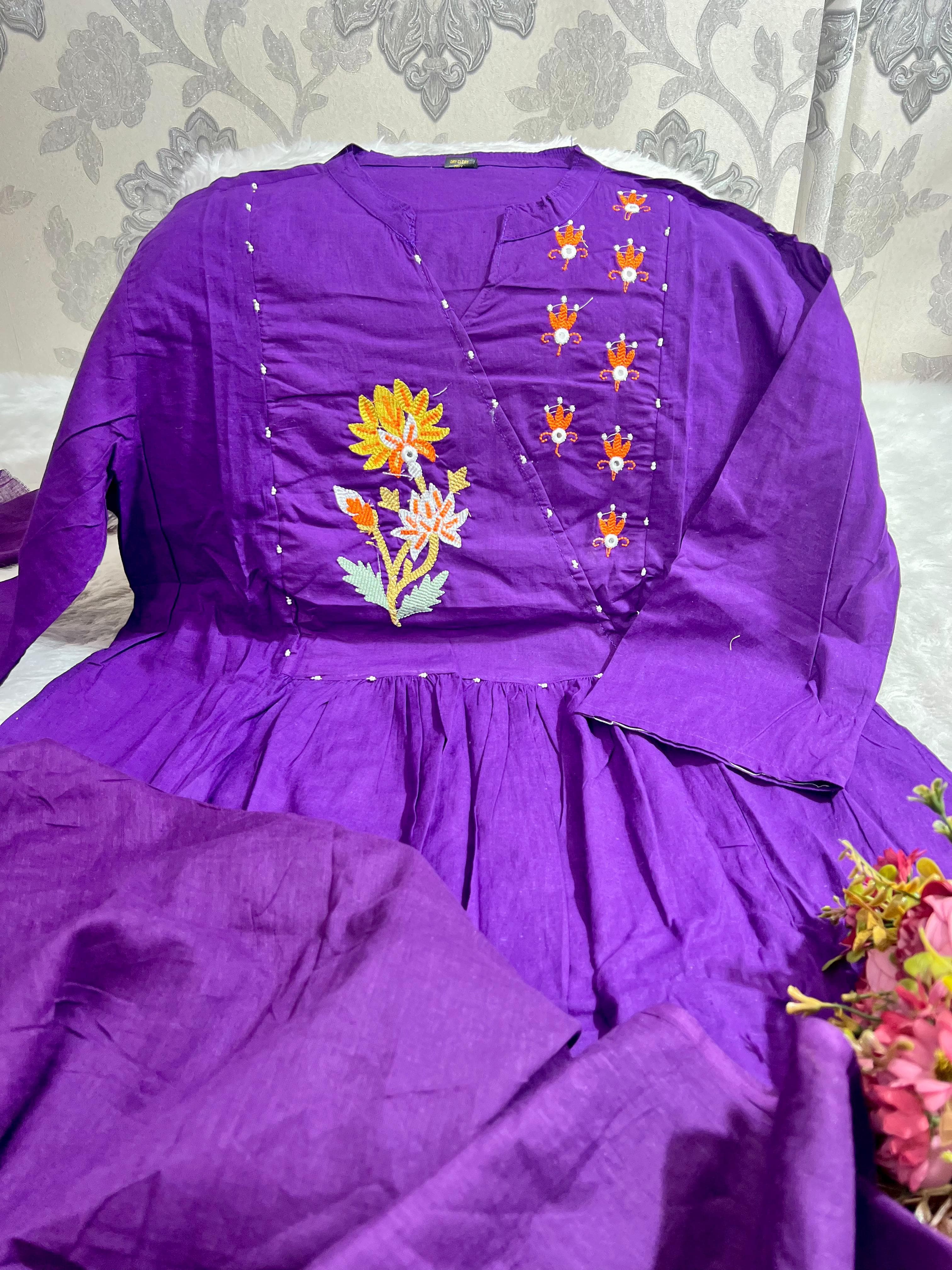 JKWH 997 Pure Fine Cotton Febric Embroidery Work A-line Kurti Set With Pocket