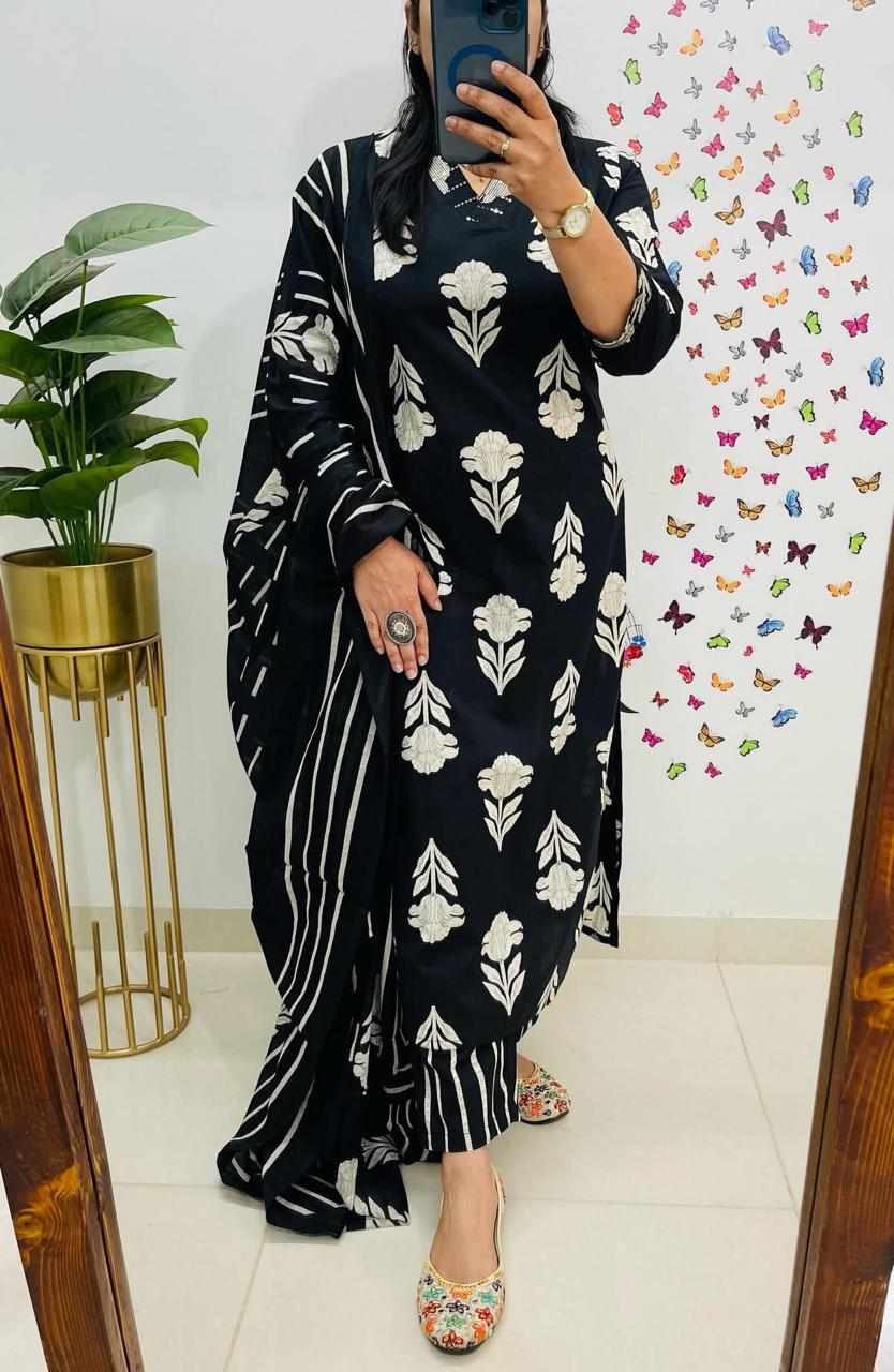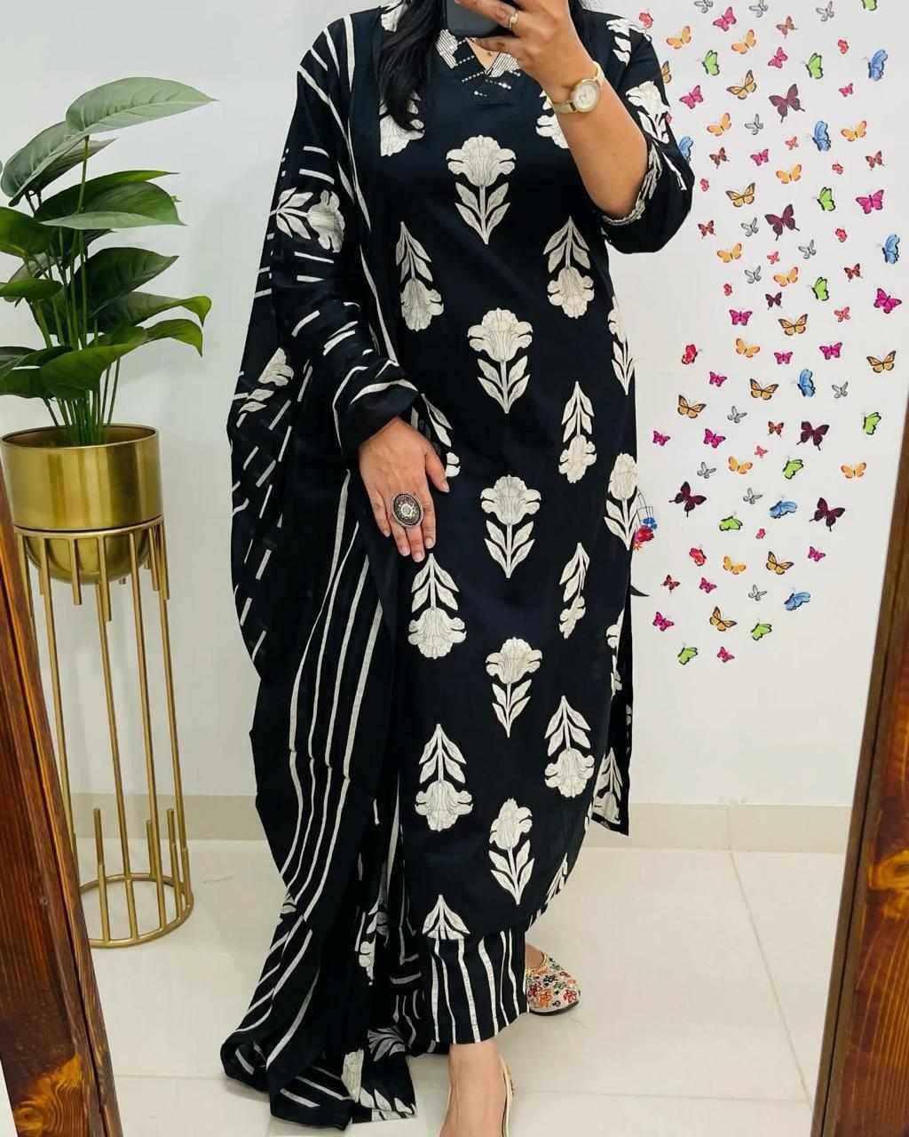 SF 4JU Pure fine Cotton fabric Kurti with Pant with cotton Sequence work Dupatta 1117 has been successfully added to your cart .