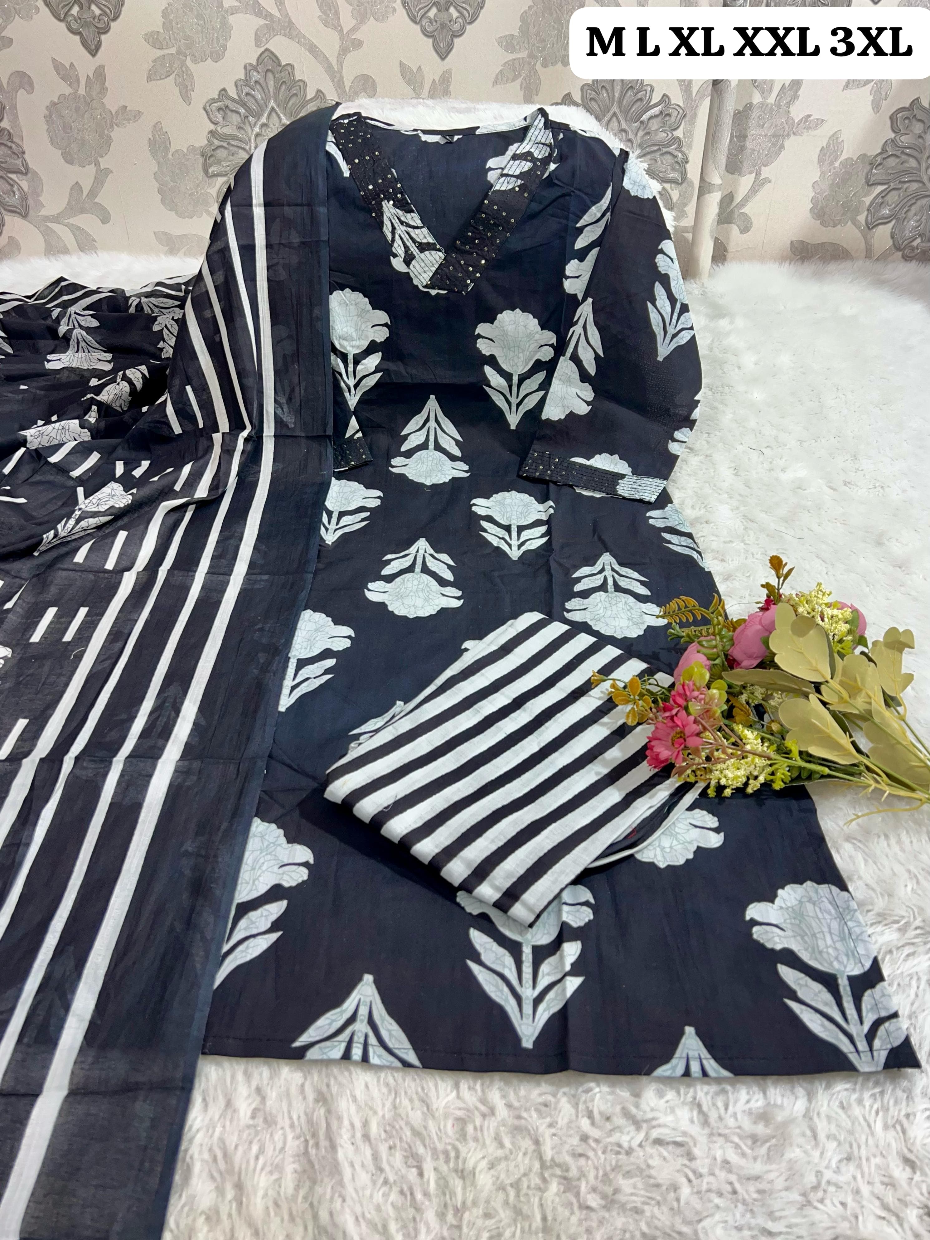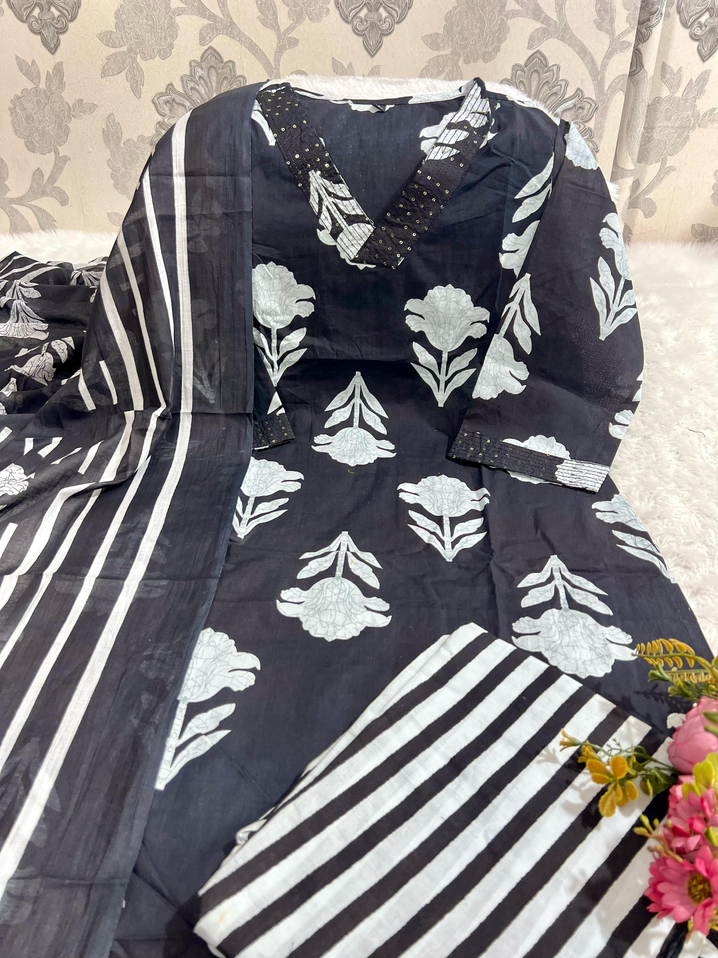 SF 4JU Pure fine Cotton fabric Kurti with Pant with cotton Sequence work Dupatta 1117