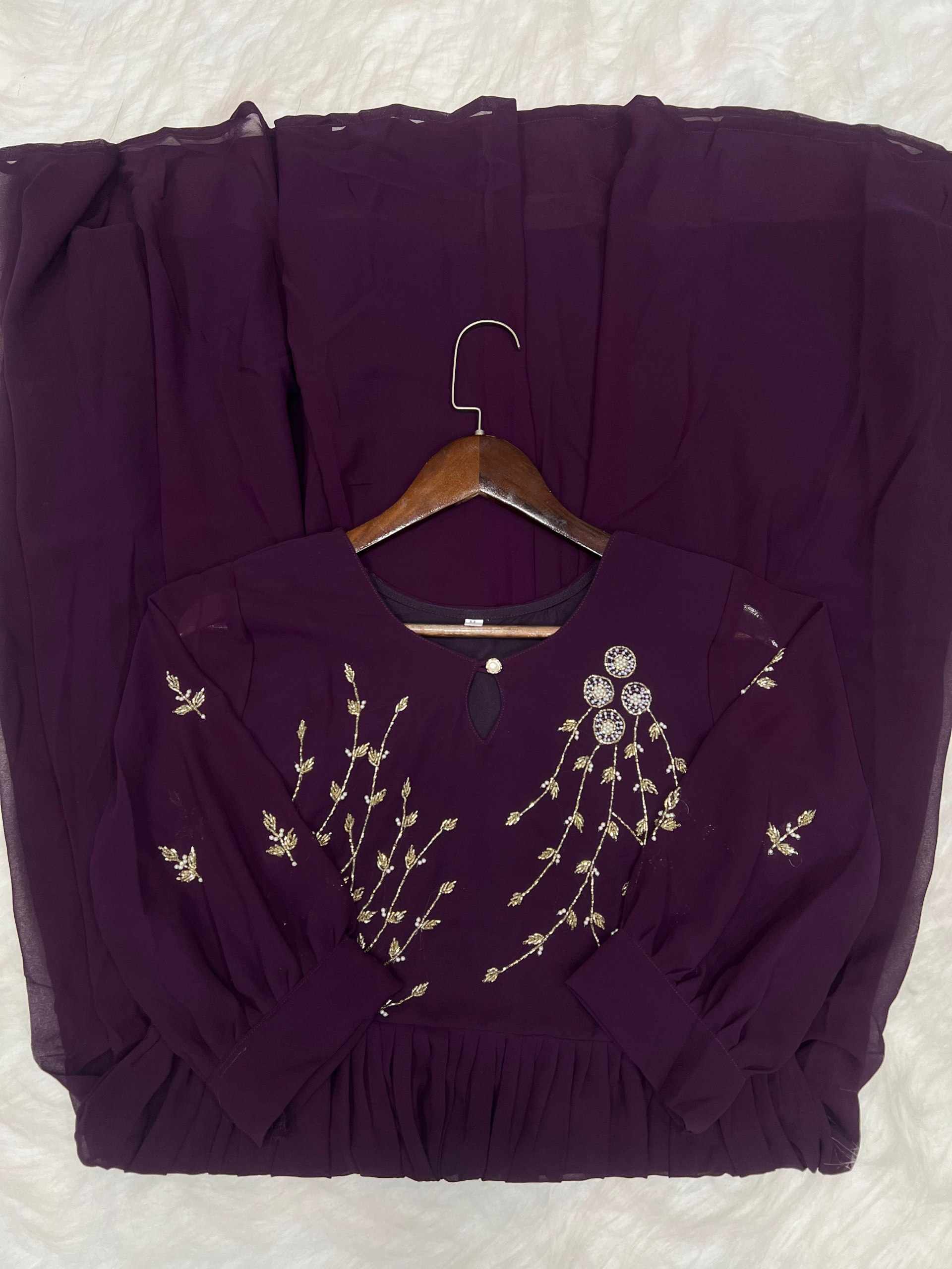 Reviews for WM09 PURPLE BLOOMING GEORGETTE HANDWORK KURTI